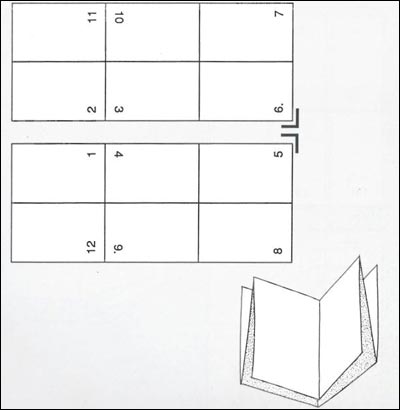 12 sidor Två parallellveck (dragspelsfals) + korsveck